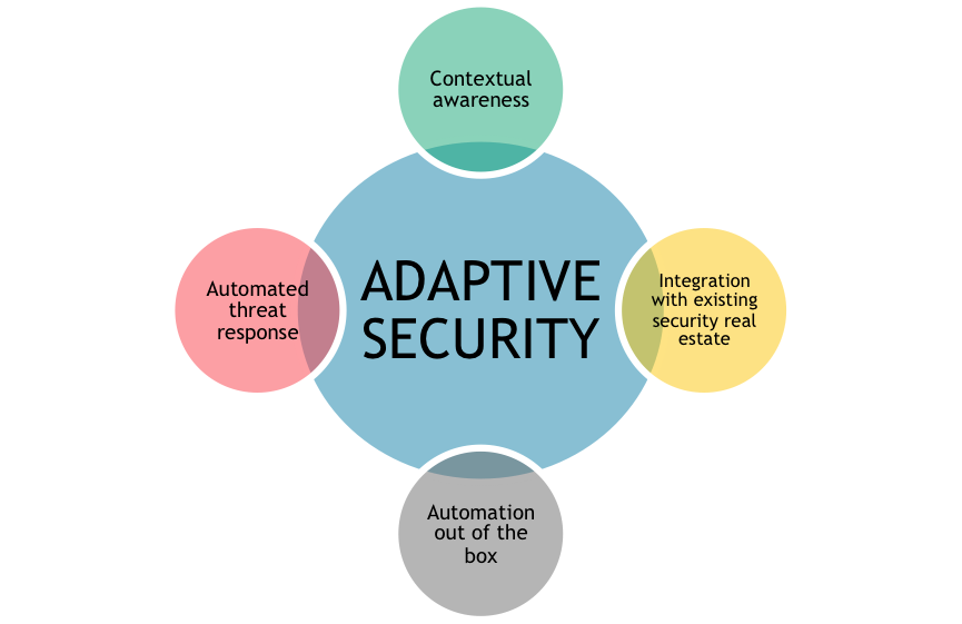 Adaptive security is an approach that has become more widely used in response to a rapidly changing DevOps environment and interconnectedness of everything (i.e. IoT). The goal of adaptive security is to create a feedback loop of threat visibility, detection, and prevention that consistently becomes more effective. There is no single system or process in adaptive security. It is a multi-level, around-the- clock monitoring system that is designed to evolve as cyber threats and attacks become more sophisticated and complex.